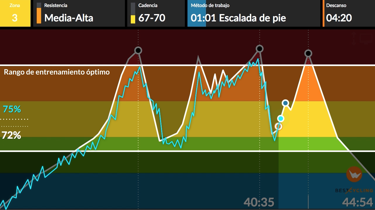 El rango óptimo de entrenamiento te muestra las zonas entre las que deberías intentar entrenar para conseguir resultados óptimos y personalizar la clase a tus necesidades.