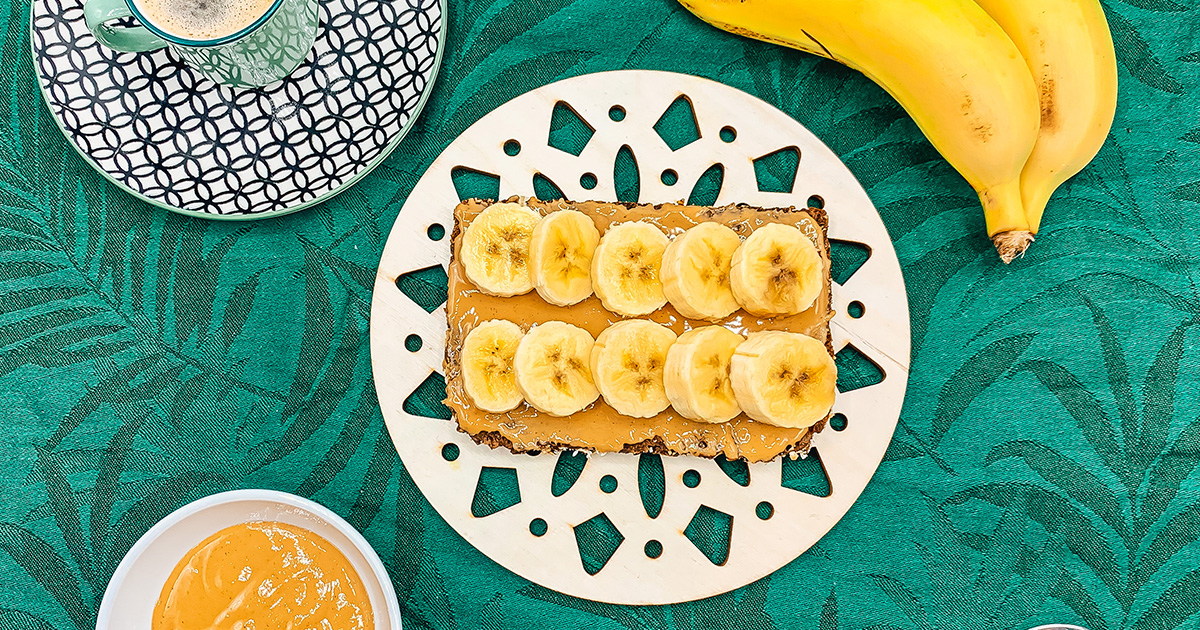 Un desayuno perfecto para deportistas: Tostada integral con plátano y crema de cacahuete